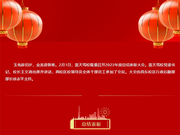 玉兔辭舊歲,金龍迎新春。2月1日,藍(lán)天駕校隆重召開2023年度總結(jié)表彰大會。藍(lán)天駕校黨委書記、校長王文清出席并講話,兩校區(qū)校領(lǐng)導(dǎo)及全體干部員工參加了會議。大會由昌東校區(qū)行政后勤部部長徐志平主持。總結(jié)表彰王文清作了題為 《推進(jìn)服務(wù)再提升 堅定...