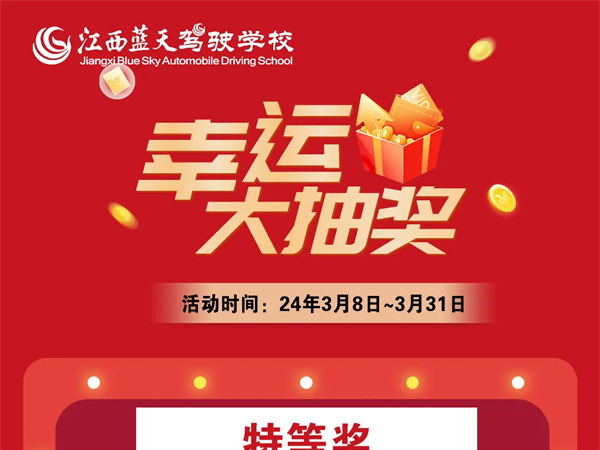 春風(fēng)和煦,楊柳依依陽春三月悄然而至正是學(xué)車的好時機(jī)快來一場春天的約會吧美麗春光中藍(lán)天與您一起約“惠”幸運(yùn)大抽獎開啟快來叫上小伙伴一起學(xué)車吧!活動時間2024年3月8日~3月31日活動內(nèi)容活動一:凡是在活動期間報名并交清全費(fèi)的學(xué)員均可參加幸運(yùn)...