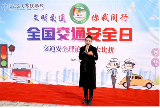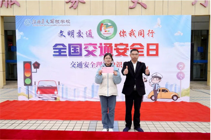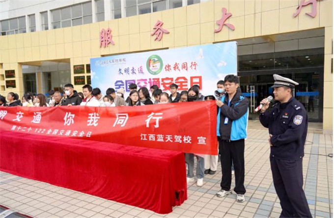 活動現場擺放了宣傳展板、宣傳標語,并向參與活動的學員發放了交通安全倡議書。南昌交警昌東中隊張警官帶領學員宣讀交通安全倡議書,學員們還觀看了《安全需要理由嗎》交通安全主題宣傳片。張警官還詳細介紹了無證駕駛、涉牌涉證、超速行駛、超員超載、疲勞駕駛等交通違法行為的危害性和嚴重后果,引導廣大學員自覺遵守交通法規,安全文明出行。