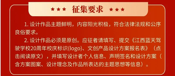 2.電子版請(qǐng)發(fā)送至郵箱:360681372@qq.com。郵件主題:校慶標(biāo)識(shí)(logo)、文創(chuàng)禮品設(shè)計(jì)方案征集+姓名。紙質(zhì)稿可投送至:昌東校區(qū)服務(wù)大廳行政辦公樓校黨辦;昌北校區(qū)服務(wù)大廳行政樓行政后勤部。
