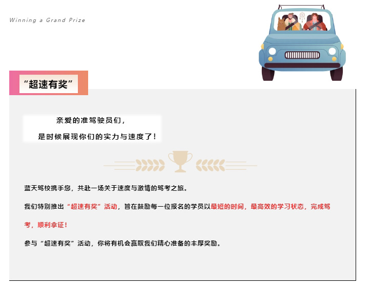 藍天駕校,“超速有獎”,駕享未來,快人一步!